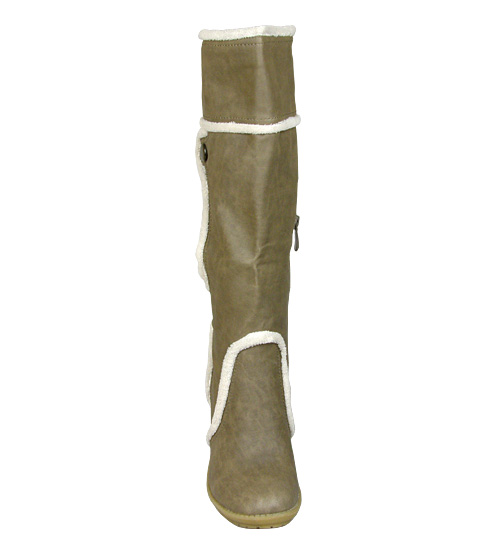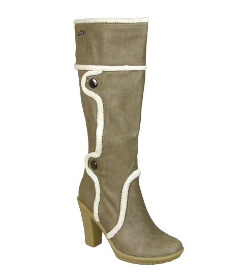 Описание: Дамски ботуш от мека кожа, ток с удобна извивка по крака.Моделът е уголемен.