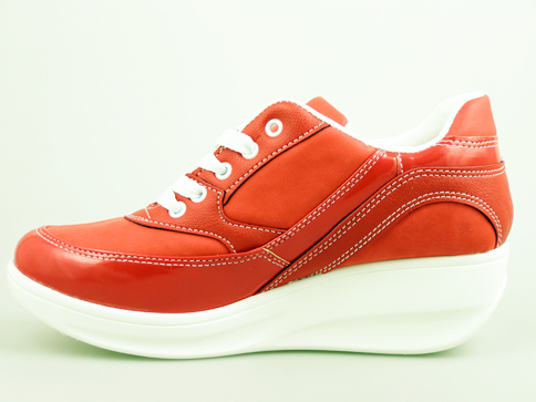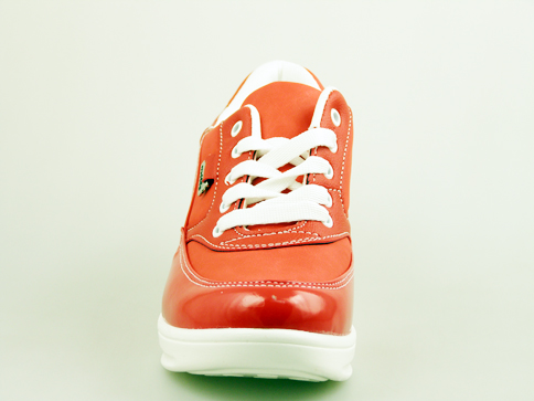 Дамски спортни обувки. За да се чувствате максимално удобно при интензивно движение и разходки сме предвидили този уникален модел, изпълнен във висококачествена еко кожа отвън, с мек текстилен хастар, позволяващ на крака да 'диша'. Ходилото е олекотено, с анатомична форма, прилягаща идеално, което осигурява комфорт и предпазва от умора и натоварване на краката, а от там и на цялото тяло. Височината на платформата е 4,5 см. Акценти в дизайна са свежият цвят и красивото съчетание от лак и кожа, които оформят тази нестандартна и модернистична визия. Подарете си комфорт и бъдете модерни и през този сезон с най-новите ни модели!